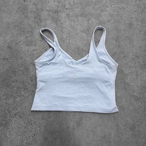 Buttery-soft, weightless Nulu™ fabric, offering light support, sweat-wicking, breathability, and four-way stretch. It features a built-in shelf bra with pockets for optional, removable cups, and a cropped length.