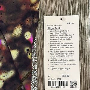 Lululemon Align Tank Top Size 4 NWT soft Focus Splatter Green Multi