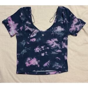 Lululemon Align Tee Crop Top Size 4 (Circulate Tie Dye Mineral Blue Multi)