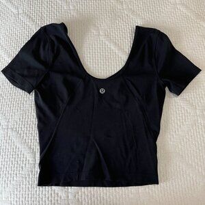 Lululemon Align V Neck And Back Race Length Tee Black Womens Size 2 VGUC