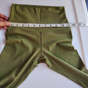 Lululemon Women's Align High Rise Crop 18" Activewear Compression Abdominal Full Stretch Size 2, Bronze Green, 26" Length, 18" Inseam, Has a rubber stain on the back. Please look closely at the photos and video. Clean, lightly used, good condition.