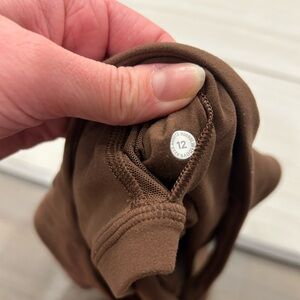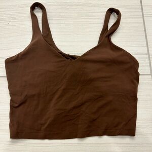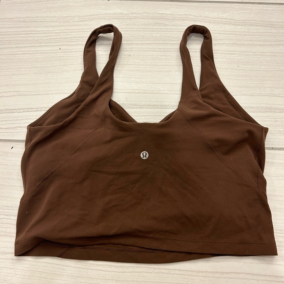 Lululemon Align Tank in Java size 12. There is no piling; top was barely worn. The straps are in the thinner old design, which in my opinion is more flattering and a better quality piece. This is in the signature nulu fabric that is butter soft. It also have a built in bra. Retails for $68 and is no longer available !