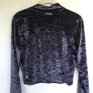 Lululemon All Aligned Mock Neck Top 10 Black Crushed Velvet Velour Crop Shirt