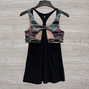 Lululemon All Sport Support Tank w/Built In Bra Black Camo Multi Size 10