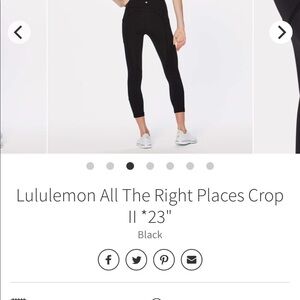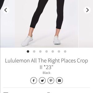Lululemon All The Right Places Crop 11 *23" size 6 color is black in good used condition