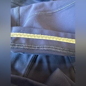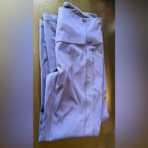 Stylish high-waisted blue leggings featuring a convenient side pocket. First photo is for color and fit only.