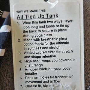 Lululemon All Tied Up Tank Top - size 4. NEW