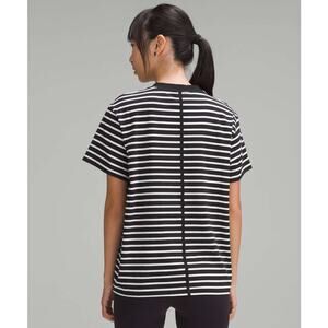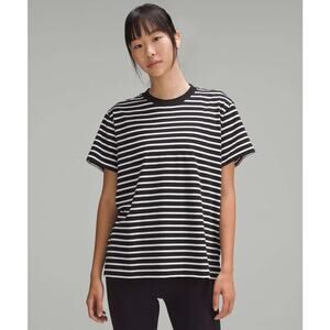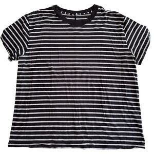 Lululemon All Yours Cotton T-Shirt Stripe Black White Plus Size 14 Loose Fit