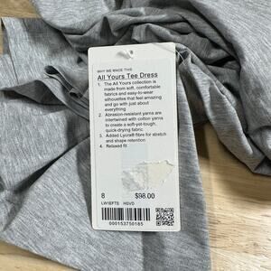Lululemon All Yours Tee Dress Grey Women's Size 8 New With Tags Condition