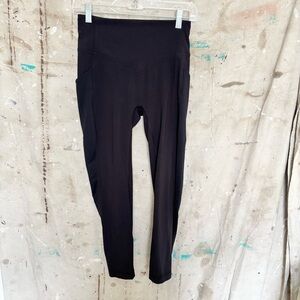Has a minor thinned area on the back left calf area, it isn't a hole or see-through at all and is structurally good, not unraveling - see pictures