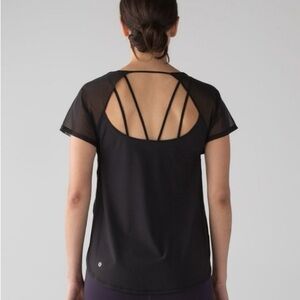 Lululemon Anew Short Sleeve Tee Black Mesh Sweat Size S Sweat Wicking Side Slits