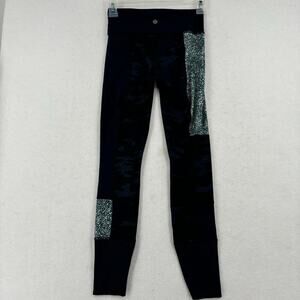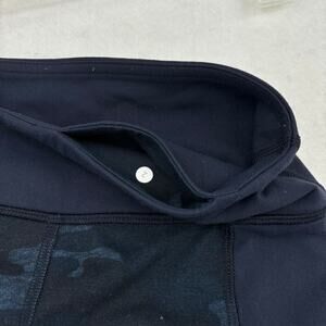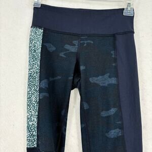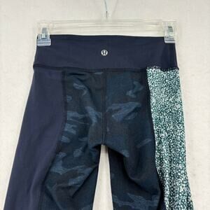 Lululemon Ankle Leggings Size 2 Navy Blue Camouflage Mixed Print Ribbed Hem