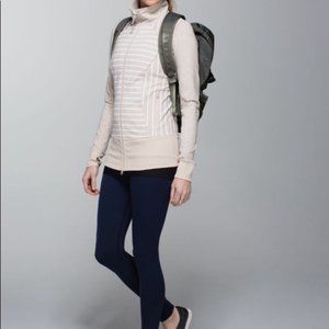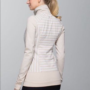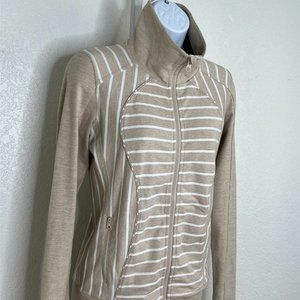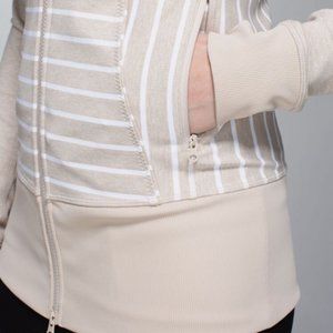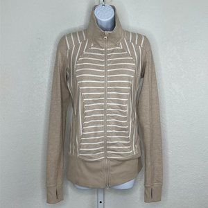 Lululemon Asana Jacket Deauville Stripe white & beige thumb holes high neck size 4