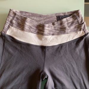 Lululemon gray astro pant, boot cut, slight flare, multicolored pattern band, great for athletic wear and everyday wear. Fits size 00-4.
