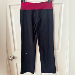 We designed this pant with a waistband that can be worn high on days we want a little more coverage and folded low when we want to feel unrestricted. The straight leg lets us check our alignment in the mirror and the fabric's four-way stretch keeps us comfortable every way we wear it (including while trampolining).