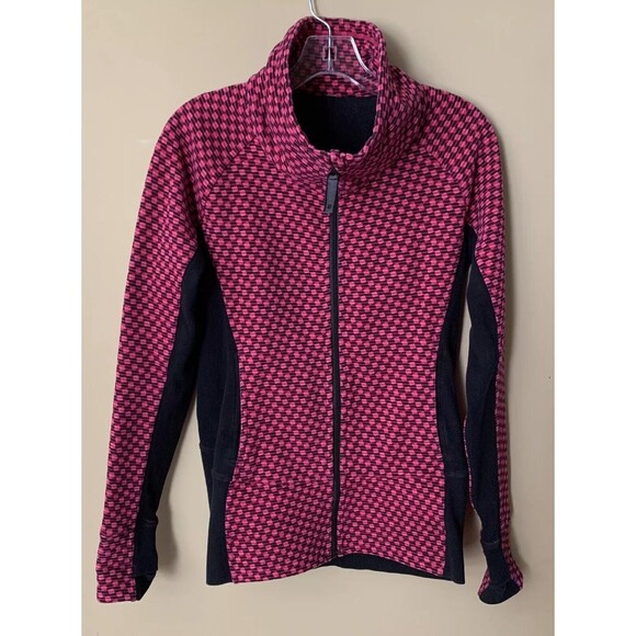 Lululemon Athletic Jacket Sz 6 Pink Black High Neck Full Zip Stretch Pockets B4
