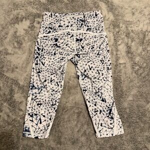 Keywords: Lululemon leggings, athletic leggings, workout leggings, cropped leggings, geometric print leggings, white leggings, blue leggings, women's activewear, yoga pants, exercise leggings, running leggings, gym leggings, athletic pants, cropped yoga pants