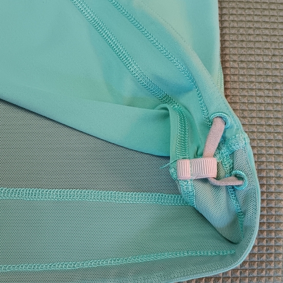This Lululemon Athletic tank top is perfect for any workout or active day out. The mint green color and solid pattern make it a colorful addition to your activewear collection. The top has a round neckline and racerback strap type, with a pullover closure for ease of wear.