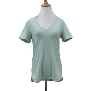 Lululemon Athletic Shirt Womens 8 Mint V Neck Striped Short Sleeve Wicking Top