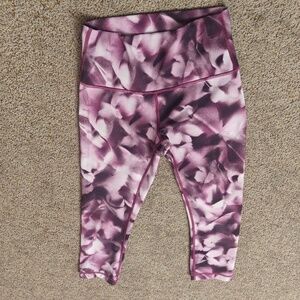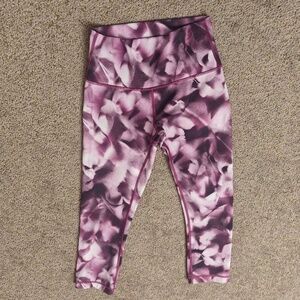Features: Racerback tank, Tie-dye leggings, Purple top, Pink/white patterned leggings, Brand: Lululemon