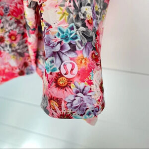 Lululemon Wrap Floral Tank Top. Preowned. Excellent condition! No size, but measurements are shown in photos. Fits approximately a 6 or 8.