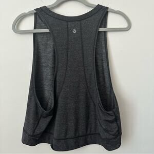 Experience ultimate comfort with this heathered gray/blank tank top from Lululemon Athletica, featuring a relaxed fit and cropped style. Its minimalist design and smooth finish make it a versatile piece for any casual occasion.