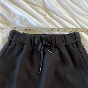 Stylish black skirt from Lululemon Athletica. Features a comfortable waistband with drawstring. Perfect for casual wear.