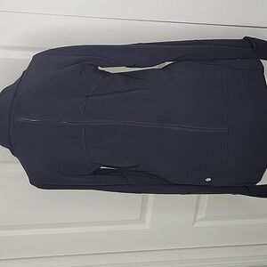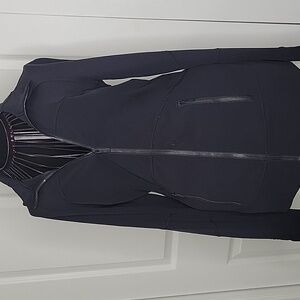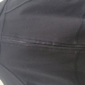 Classic black zip up lululemon jacket with zippered pockets. Thin mesh seam runs down the back.