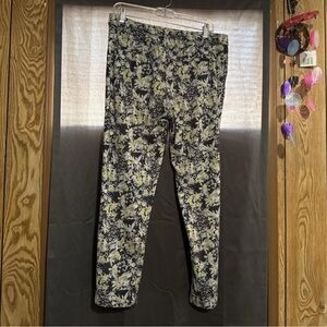 Elegant pants with a floral design. Features black and cream hues. Perfect for casual wear.