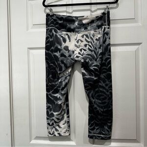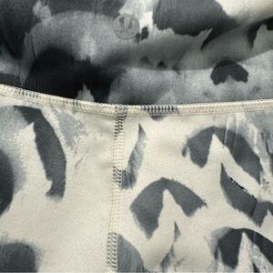 These Lululemon Athletica leggings offer a sleek and stylish look in a black and gray color scheme. Designed for optimal performance, they feature a form-fitting silhouette and are crafted from a stretchy athletic material. Perfect for workouts or casual wear, these leggings provide comfort and flexibility, extending to ankle length with a standard elastic waistband.