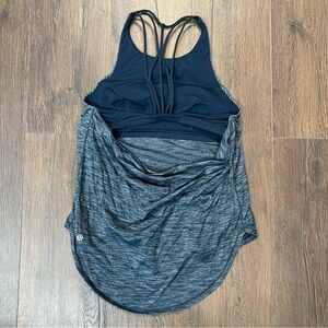 Experience ultimate comfort and style with this Lululemon Athletica tank top, featuring a sleek racerback design. Crafted from a lightweight, moisture-wicking fabric, it ensures a breathable fit for any workout. The blue-gray hue with a marled finish adds a sophisticated touch to your athletic ensemble.
