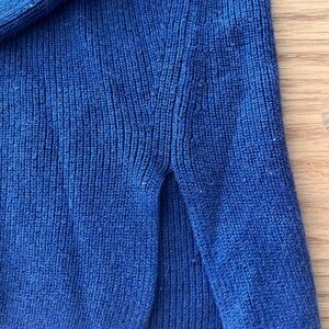 Stylish blue knit sweater by Lululemon Athletica. Ideal for layering.