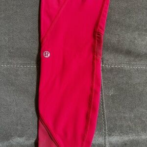 Dynamic pink leggings with zippered pockets. Ideal for active wear.