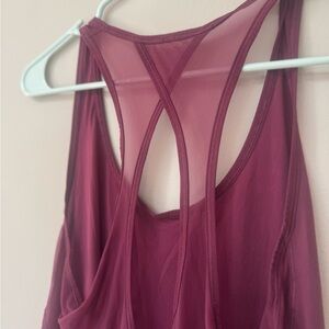 Chic burgundy tank top with racerback design. Ideal for workouts or casual wear. Soft and breathable fabric.