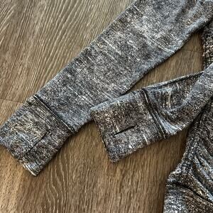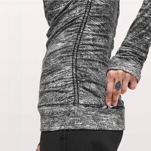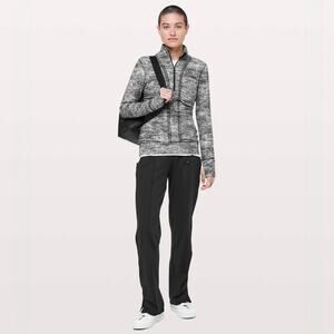 Sleek and functional Lululemon Cypress Kiss 1/2 Zip in a rare Rush Jacquard Black/White print. Designed with a slim, contoured fit and ultra-soft Rulu™ fabric, it features a half-zip front, flattering seam details, thumbholes, and discreet zippered pockets for storage. Perfect for training, running, or casual layering.