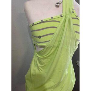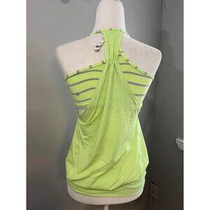 Lululemon Athletica Draped Striped Lime Green Tank Top Built In Bra Size 4