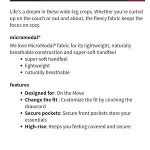Life's a dream in these wide-leg crops. Whether you're curled up on the couch or out and about, the fleecy fabric keeps the focus on cozy.