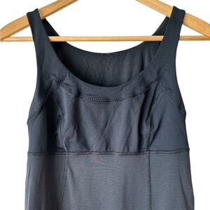 Lululemon Athletica Elevate Cinch Waist Tank Top Scoop Neck Black Gray Stripe
