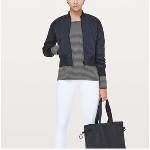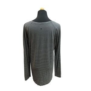 Lululemon Athletica Emerald Modern Stripe Top Tee Long Sleeve Heathered Black White Size 8