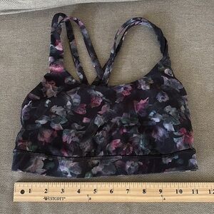 Lululemon Athletica Energy Sports Bra Black Floral Yoga Athletic Women’s size 4