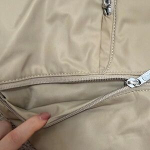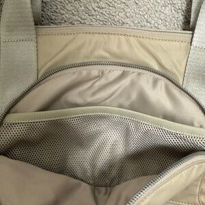 Chic tan tote with sleek design. Features sturdy handles and ample space.