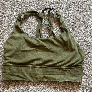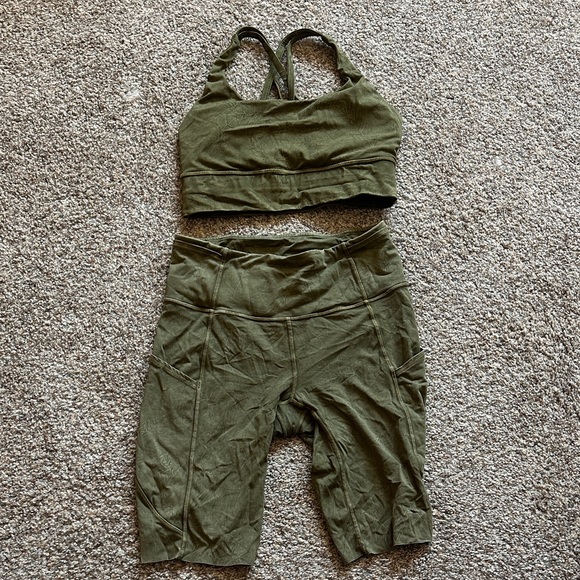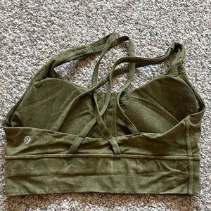 Lululemon Comfortable forest green activewear. Ideal for fitness routines.