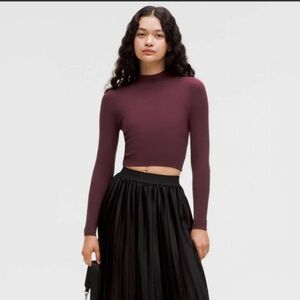 Lululemon Athletica Garnet Ribbed-Knit Twist Back Mockneck Sweater.