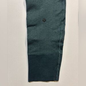 Experience unparalleled comfort and style with these green leggings from Lululemon Athletica. Designed with a high waistband and crafted from a stretchy, form-fitting material, they offer a sleek and minimalist look. Perfect for both athletic activities and casual lounging, these leggings provide a dense, opaque finish for ultimate confidence.