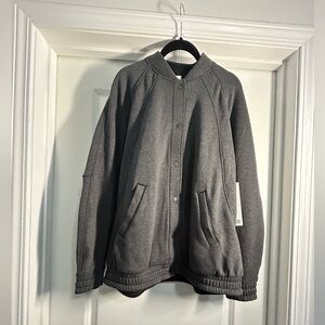 Lululemon Athletica Heathered Black Varsity Jacket with Ribbed Cuffs