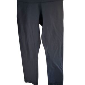 These black leggings from Lululemon Athletica feature a high-rise waistband for a secure fit. Made from stretchy performance fabric, they are suitable for workouts and casual wear. The minimalist design offers a sleek look. Size 4. Measurements are approximate. P890 B564 #Athleisure #Activewear #Lululemon