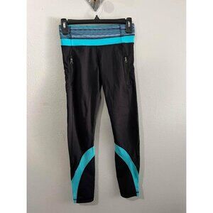 Lululemon Athletica Inspire Tight Size 4 Black And Teal Side Pockets With Zipper