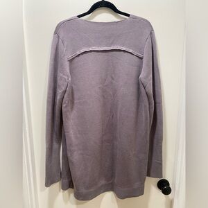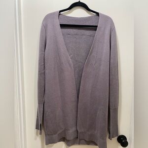Soft lavender cardigan. Open front design. Ideal for layering.