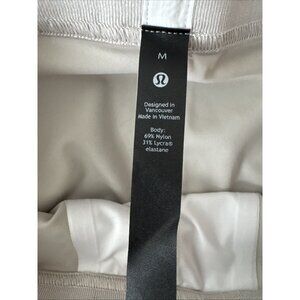 The product is a pair of Lululemon Athletica Men's Beige L98 License to Train Athletic Pants in size Medium. These leggings feature a solid pattern, pull-on closure, and are made of nylon and lycra material. Designed for activewear, they offer an athletic fit and are suitable for various occasions. The jogger style pants are perfect for the summer, fall, and spring seasons, making them a versatile and comfortable option for men's active lifestyle.