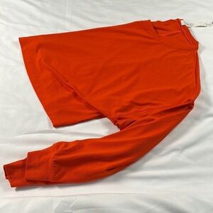 This eye-catching orange sweatshirt from Lululemon Athletica boasts a trendy boxy crop style and a unique mandarin collar. The full-length sleeves and soft fabric ensure comfort and style for any casual occasion.